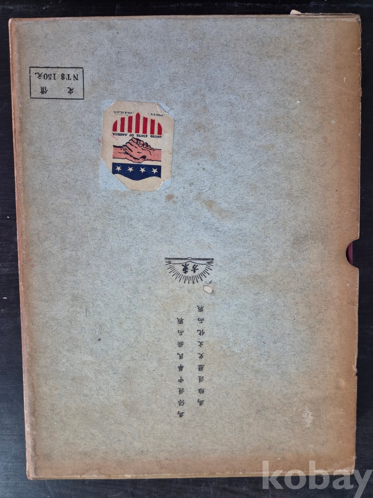 책 뒷면(3번째 사진)에 미국 국기와 악수하는 모양의 스티커가 붙어 있는데, 이는 당시 미국 경제원조나 문화교류 프로그램의 일환으로 배포되었을 것으로 추정합니다