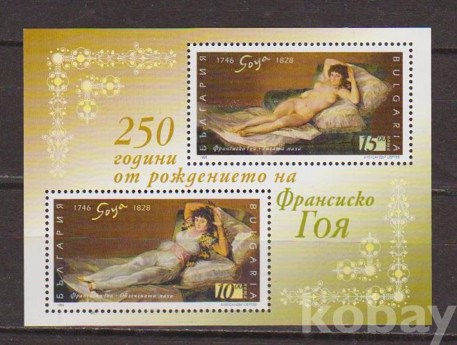 (누드명화) Bulgaria(불가리아) 1996 Goya 누드화 sheet of 2 MNH