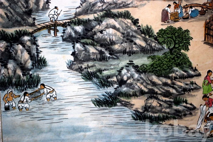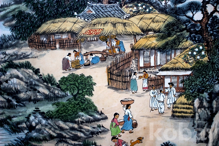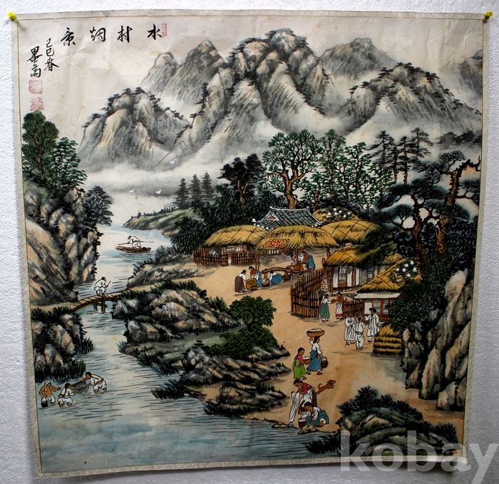 墨齋(묵재) 이?석의 풍속도 - 초가가 있는 냇가의 마을 풍경