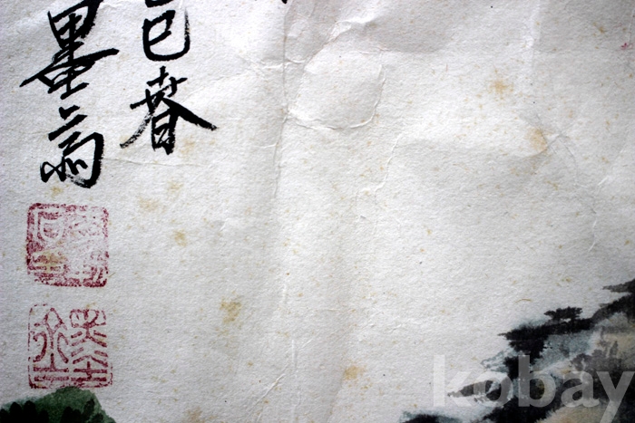 우측 상단에 표구 시 지워질 연한 얼룩이 약간 있을 뿐