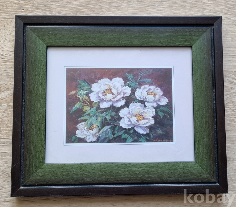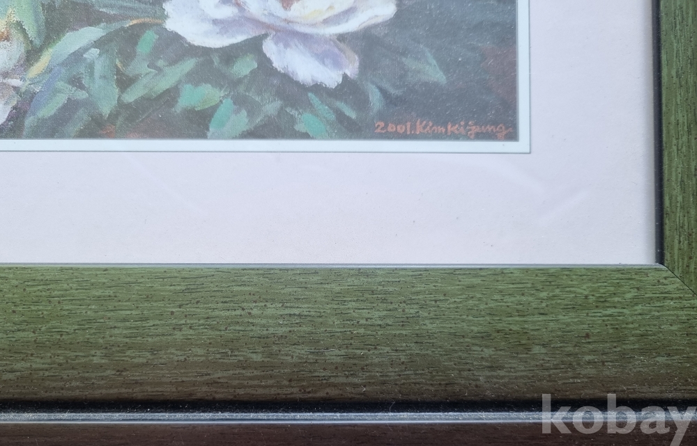 상태: 작품 보존 상태가 매우 양호하며, 녹색과 고동색이 조화로운 고급 이중 액자가 포함되어 있어 수령 후 바로 벽에 거실 수 있습니다.