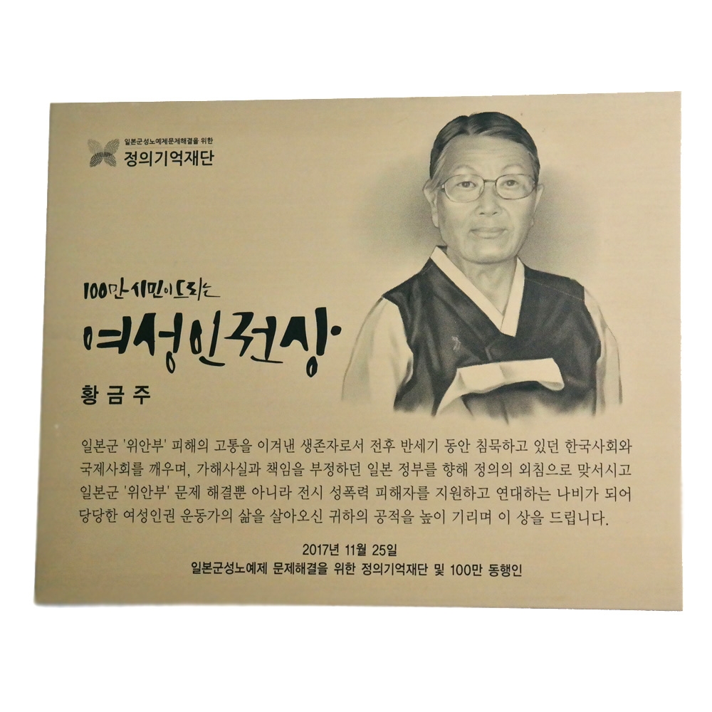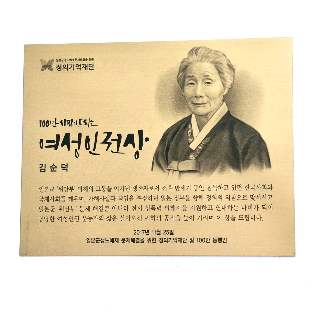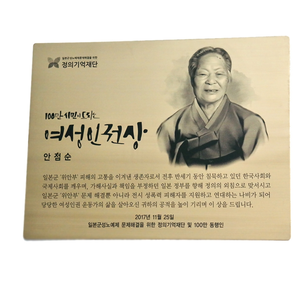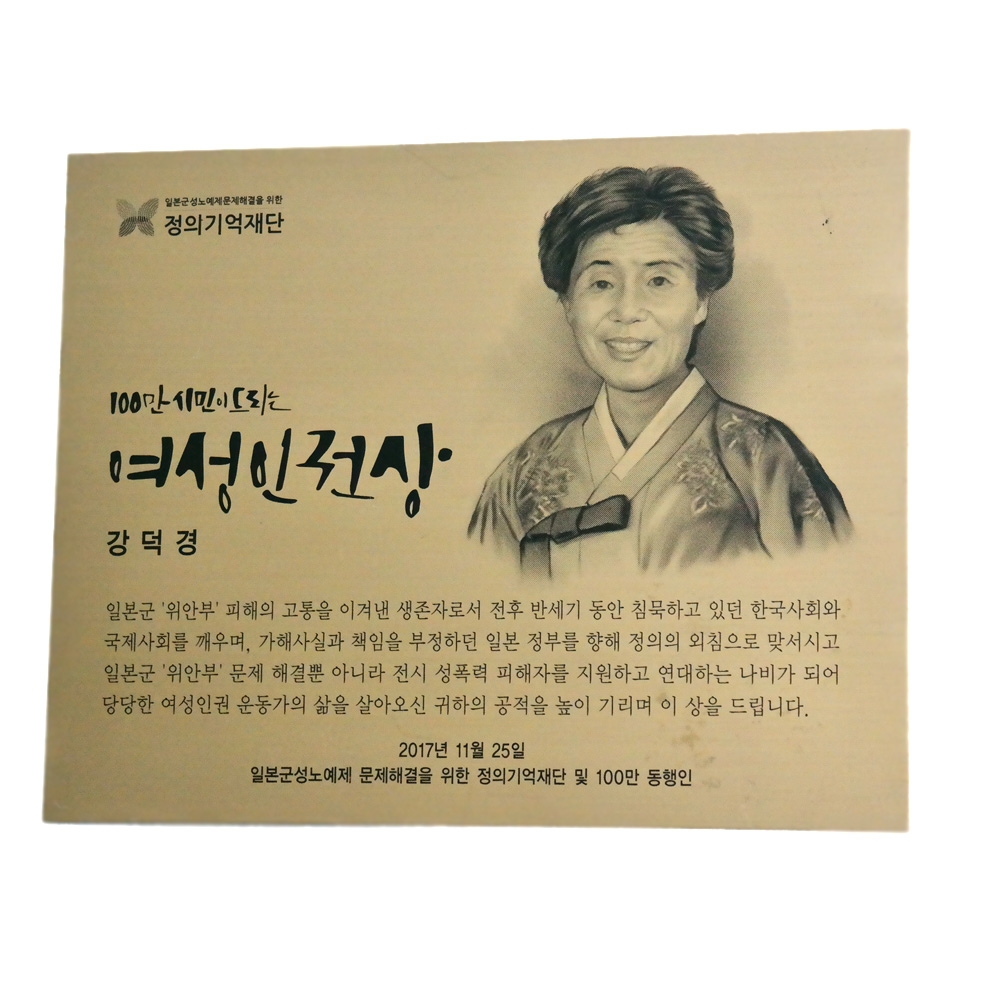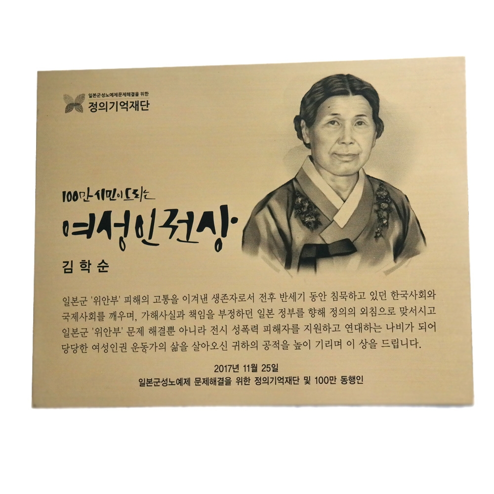 황동판으로 만들어진 위안부할머니 5인에대한 기억이 담겨있는 소품 입니다.