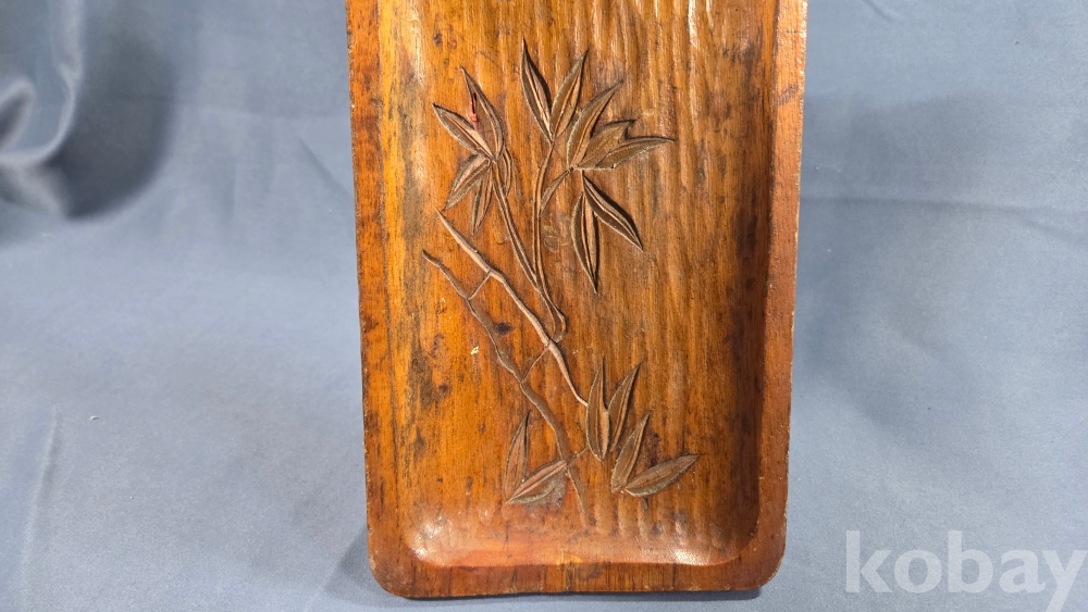 대나무 문양이 조각되어 있는 나무 차반, 쟁반 종류입니다.