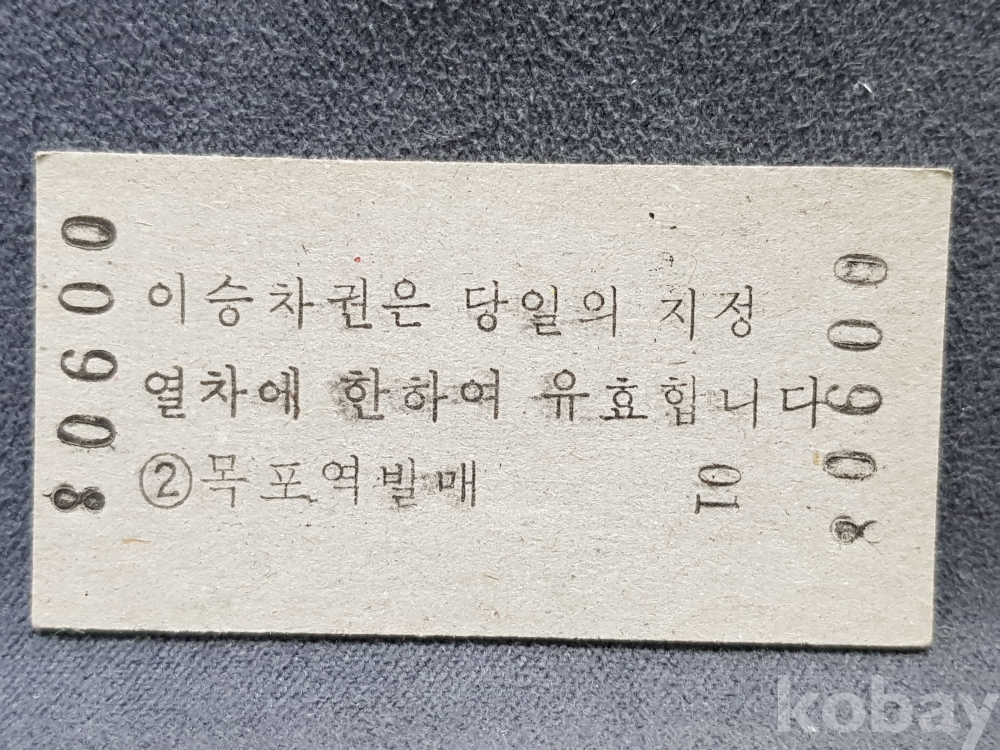 - 미사용 통일호 승차권(특정구간전용) " 목포 ▶ 백양사 " 2600원