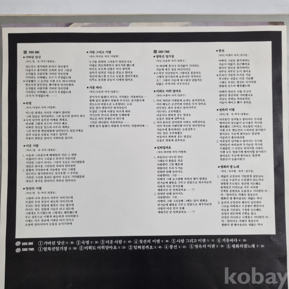 | 자켓상태 | EX : 약간의 마모, 모서리 찢김 존재 | 음반상태 | EX : 재생에 영향 없는 가벼운 기스 존재 | 발매정보 | 초반 | 가사지여부 | 유 |