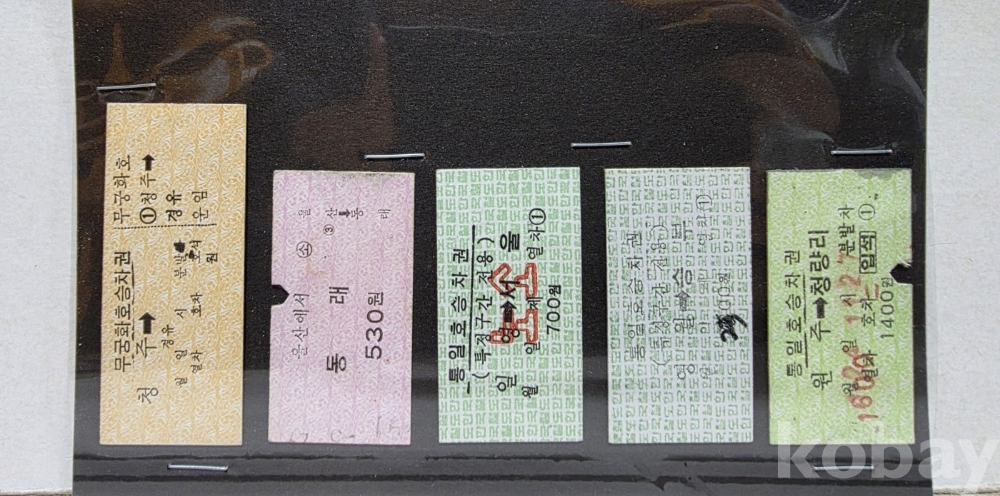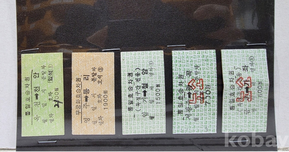 -기차, 지하철, 버스표등 다양합니다.