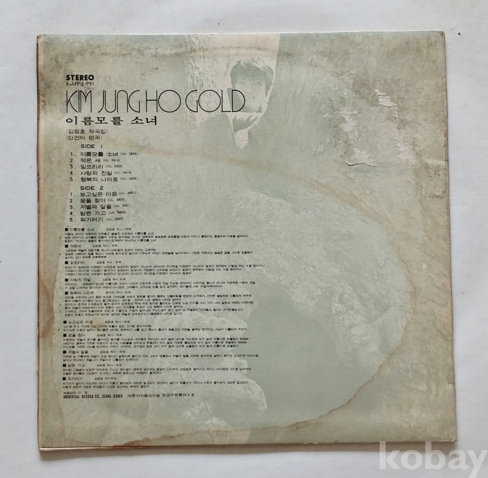 EX : 약간의 마모, 모서리 찢김 존재 음반상태