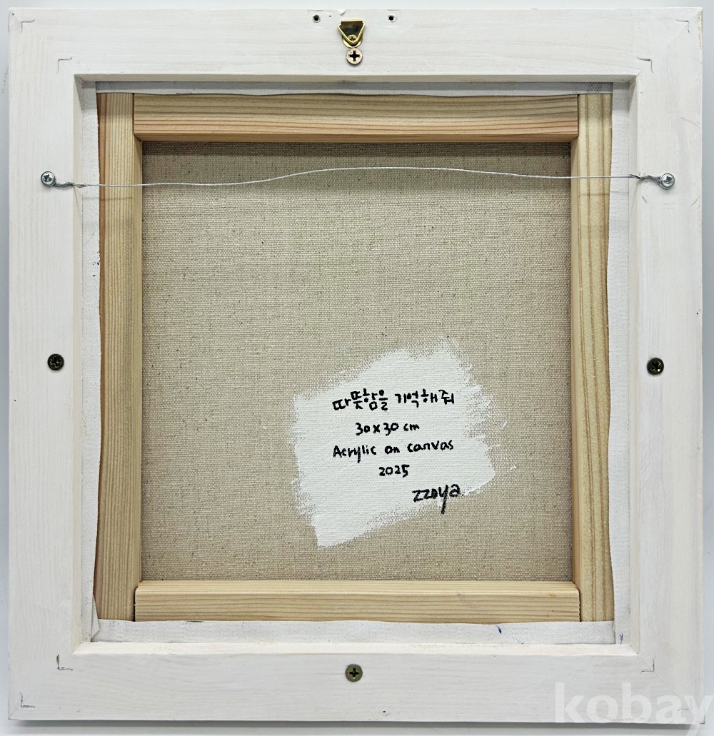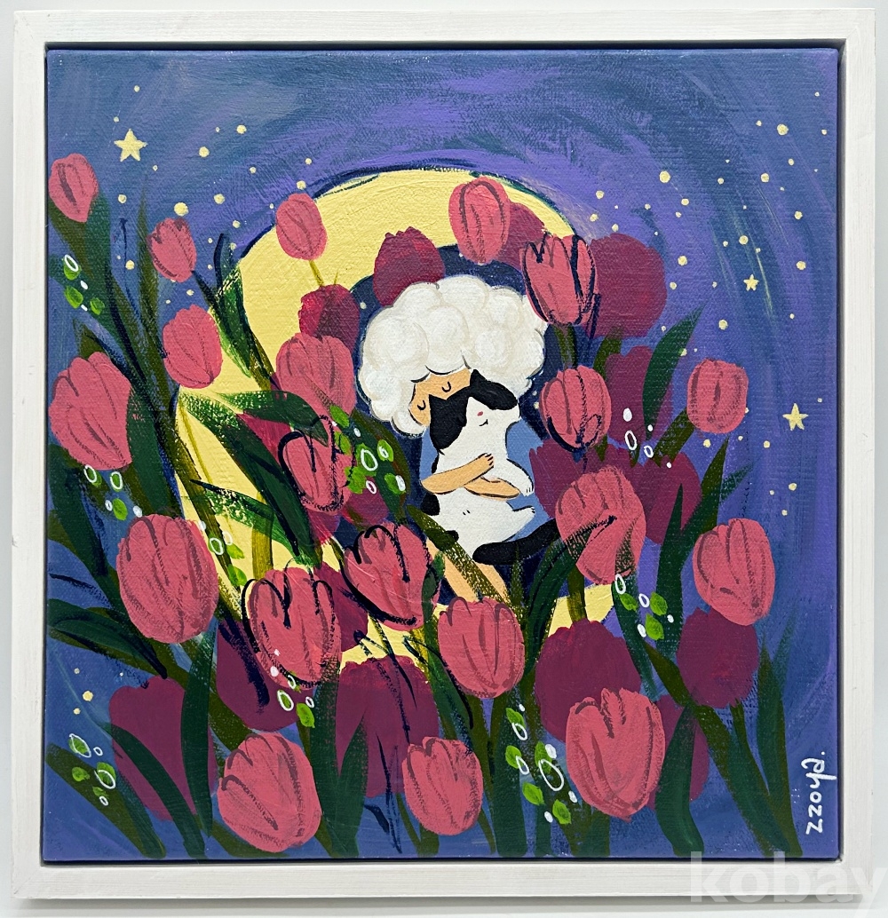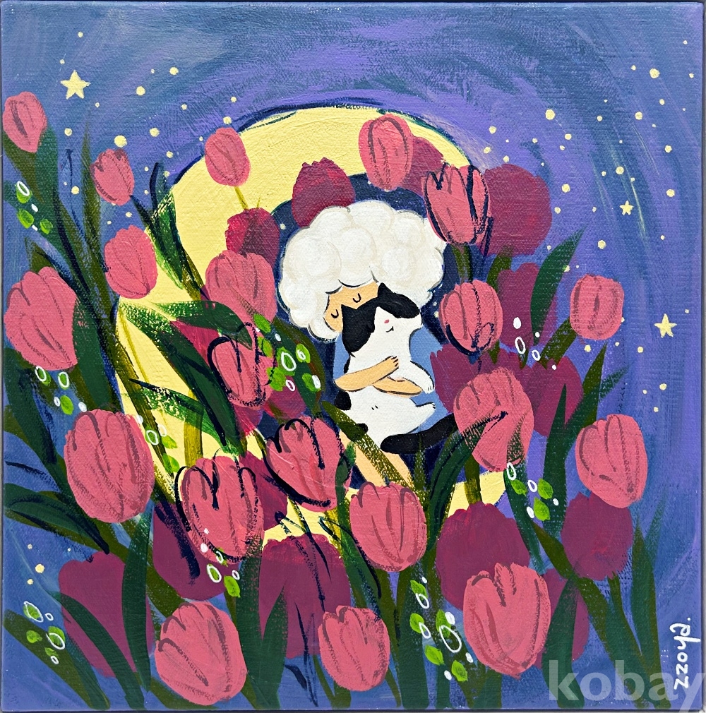 작품 및 작가 소개 | [따뜻함을 기억해줘] 꽃이 가득 핀 밤의 정원 속에서 구름 소녀가 고양이를 조용히 안고 있는 이 장면은, 서로의 체온을 느끼며 말없이 마음을 낮추고 머무는 포옹의 순간을 담고 있습니다. 달빛과 별이 어둠을 부드럽게 감싸는 공간은 불안보다 안심이 먼저 떠오르던 기억의 풍경이며, 겹겹이 피어난 꽃들은 감정이 차분히 가라앉는 시간을 상징합니다. 이 작품에서 포옹은 특별한 사건이 아니라 하루의 끝에서 자연스럽게 남는 온기처럼 존재합니다. 작품은 지나간 순간을 억지로 붙잡기보다, 그 안에 머물렀던 따뜻함을 조용히 기억해 두는 마음에 관해 이야기하고 있습니다. [작가노트] “하루를 버텨낸 마음이 잠시 숨을 고르는 곳, 감정의 여백을 그리는 쪼야” 우리는 각자의 일상을 살아가며 말로 설명하기 어려운 수많은 감정의 찰나를 스쳐 지나갑니다. 정해진 목적지를 향해 숨 가쁘게 움직이다 보면, 이러한 감정들은 미처 이름 붙여지지도 못한 채 흘러가 버리곤 합니다. 쪼야 작가는 이렇듯 소외된 순간들이 사라지는 것이 아니라, 우리 마음속 어딘가에 조용히 머물러 있다고 믿습니다. 작가의 캔버스 위에 등장하는 고양이와 구름 소녀, 꽃과 별은 극적인 사건을 보여주기보다, 하루를 묵묵히 버텨낸 마음이 잠시 숨을 고르는 평온한 풍경에 가깝습니다. 작품 속 존재들은 부드럽게 안기거나 말없이 같은 공간을 공유하며, 서로를 억지로 붙잡지 않아도 같은 온도로 연결될 수 있는 관계의 형태를 보여줍니다. 작가는 이를 통해 감정이 가장 부드러워지는 찰나와 마음이 느슨해지는 상태를 섬세하게 포착합니다. 이 그림들은 직접적인 위로를 건네기보다, 관람객이 작품을 바라보는 동안 각자의 마음이 쉬어 갈 수 있는 '작은 여백의 시간'을 선사합니다. [작가이력] 쪼야 작가는 2019년부터 일러스트레이션 분야에서 활동하며 이미지와 서사를 결합한 작업을 통해 대중과 폭넓게 소통해 왔습니다. 감정의 세밀한 흐름을 시각적으로 풀어내며 자신만의 독창적인 세계관과 표현 언어를 구축해 온 작가는, 2024년부터 회화 작업을 중심으로 본격적인 전시 행보를 이어가고 있습니다. 1019갤러리, 김정숙 갤러리, 성북동 연우재 초대전 등 주요 갤러리에서의 전시는 물론, YK갤러리와 유앤갤러리 등 다수의 전시에 참여하며 감정과 관계의 본질을 회화적 장면으로 꾸준히 발표해 왔습니다. 고양이와 구름 소녀를 주요 모티프로 삼아 '머무름', '안심', '연결'의 감각을 시각화하는 데 주력하고 있으며, 현재는 개인 작업을 바탕으로 활발한 작품 활동을 지속하고 있습니다. | ||