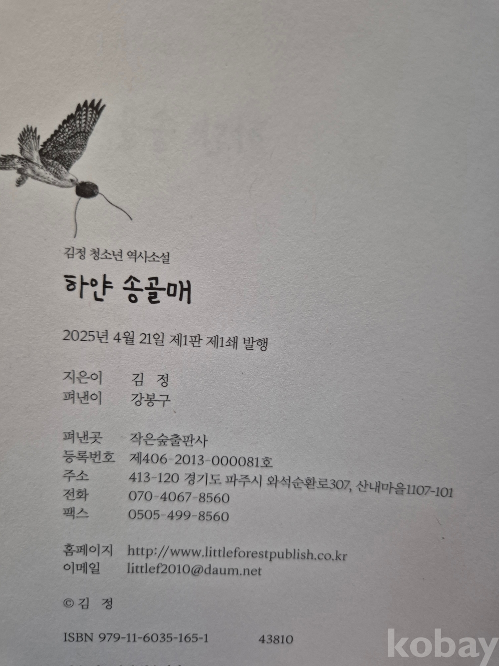 2025년 발간한 청소년 역사소설 『하얀 송골매』