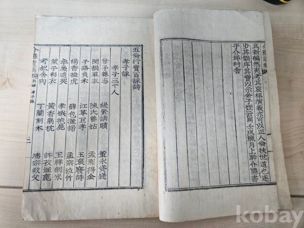 이책은 전체가 五倫行實(孝子,忠臣,烈女,親愛,信義) 거론 된 인물에 대해 詩로 읇은 五倫行實百詠詩이다