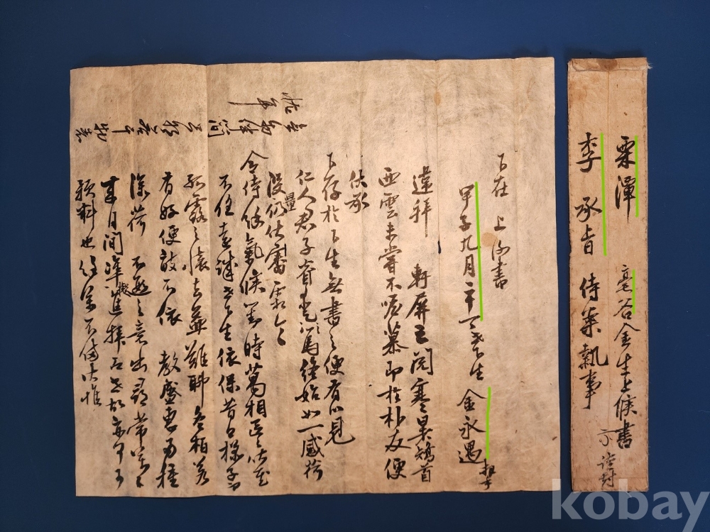 전주 율담(栗潭) 이 승지(李承旨)에게 보낸 간찰.