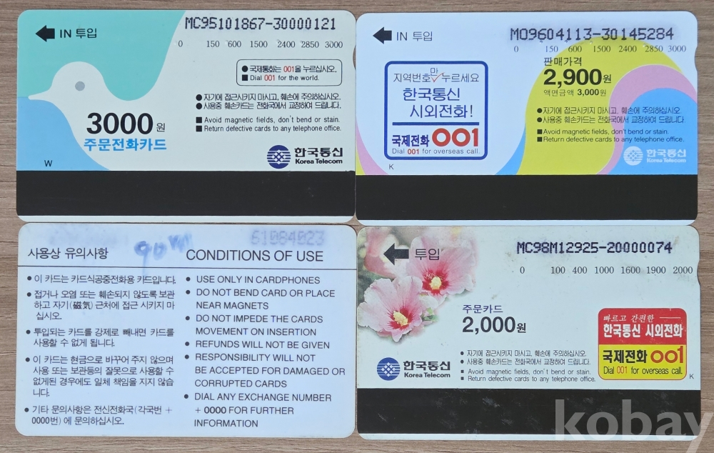 희귀 8-90년대 공중전화카드 4종 #57