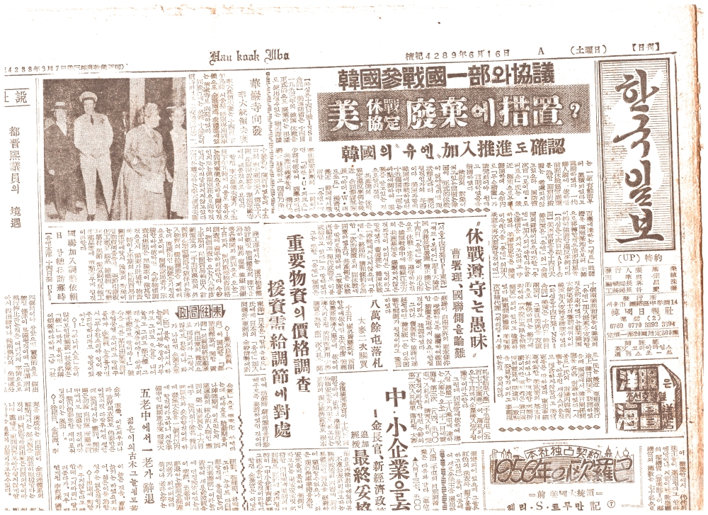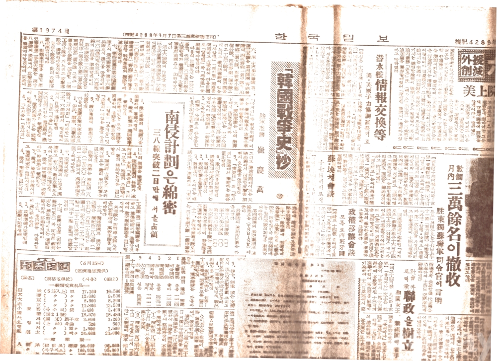 2면: 한국전쟁 초사 (남침 계획 면밀) 과 도매물가, 장화홍련전 광고 등