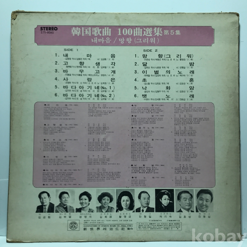 LP 83,840-69 한국가곡 100곡전집 5집 - 내마음/ 망향 . 자켓 EX- 알판 EX 77 년 국내반