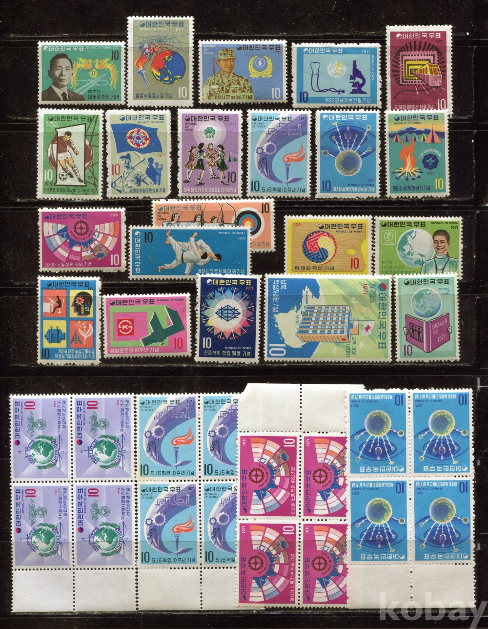 - [우표/블록] 1971년 미사용 기념우표/블록 모음 ( All MNH : Mint Not Hinged)