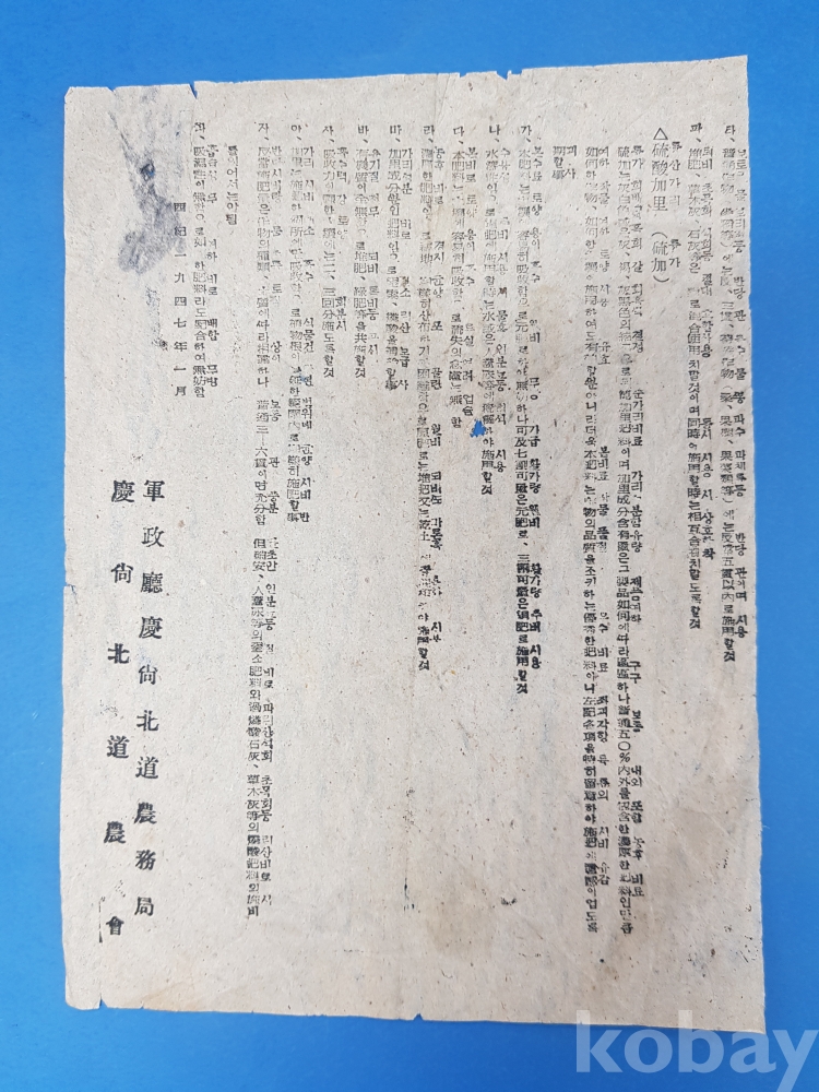 **** 근현대사 자료 - 1947년 농업 관련 문서/경상북도 농무국 경삭북도 농회