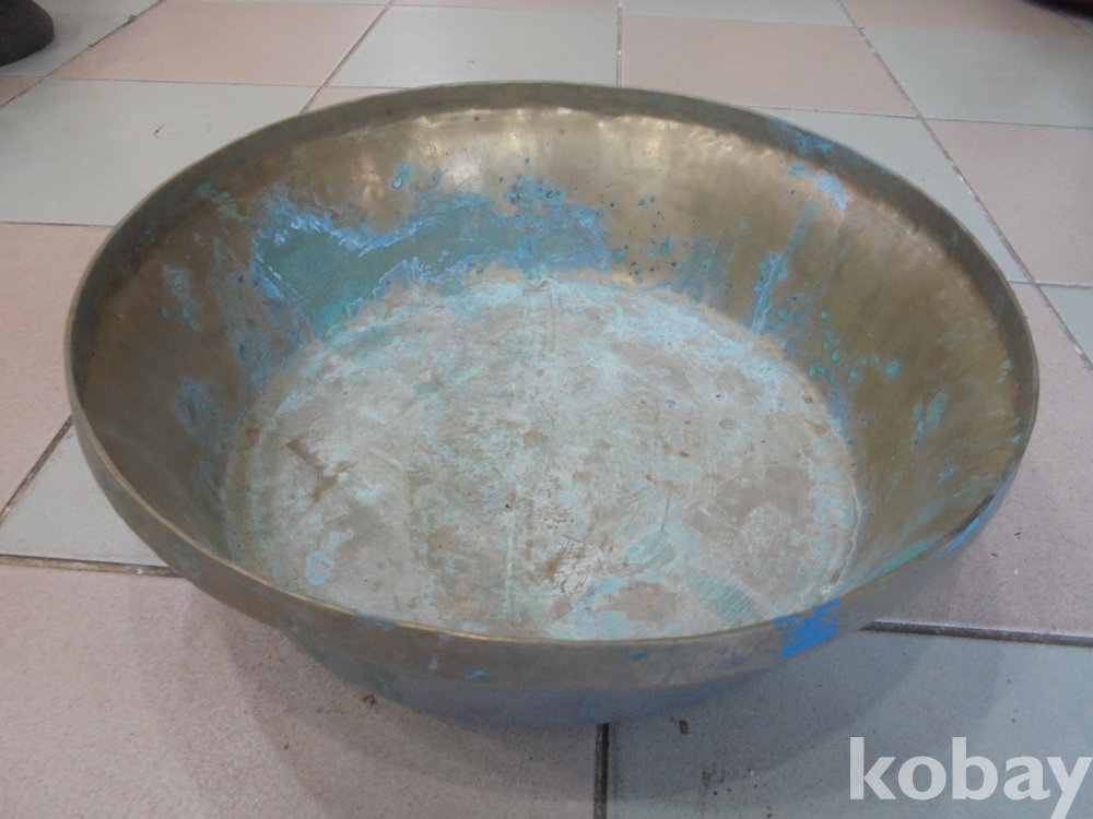 오래되였여도 쇠가좋아 걷에에만 푸른녹이나있어 쉽게닦을수 있는 크고 무겁고 방짜로만든어 오래된 오리지날 큰양푼