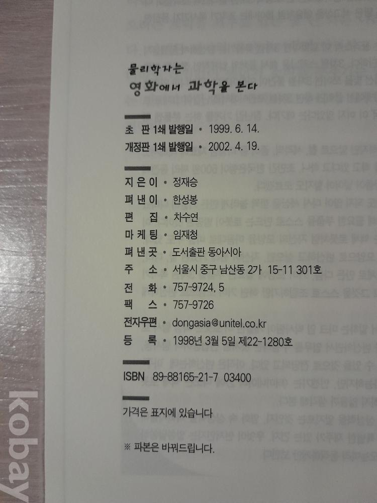 [ 물리학자는 영화에서 과학을 본다 ] 영화보기의 새로운 즐거움 / 정재승 지음