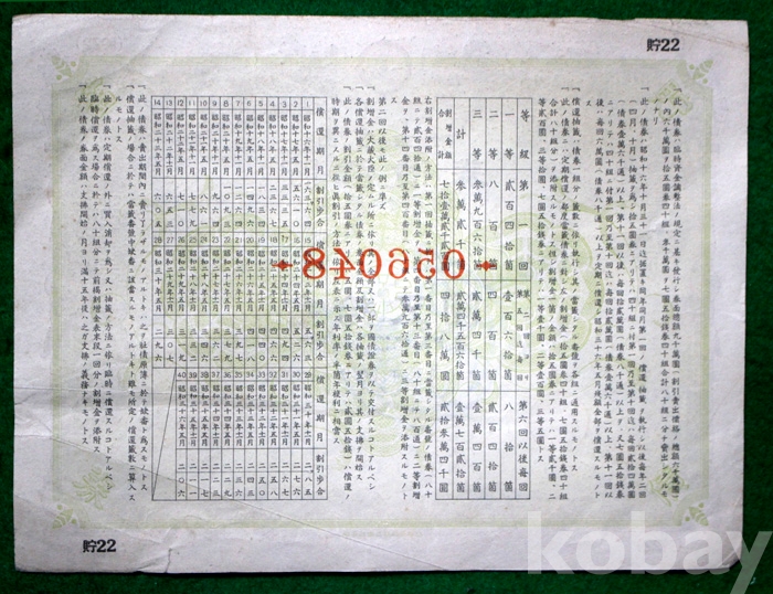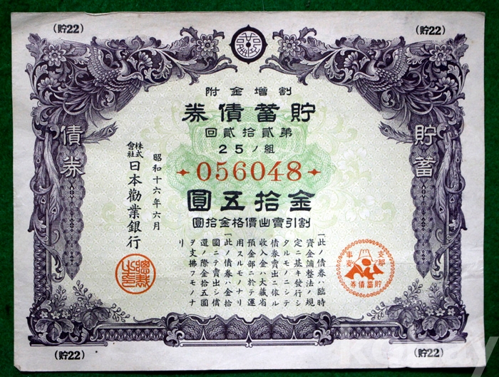 1941년 일본근업은행의 제22회 할증금부 저축채권 : 金 15원