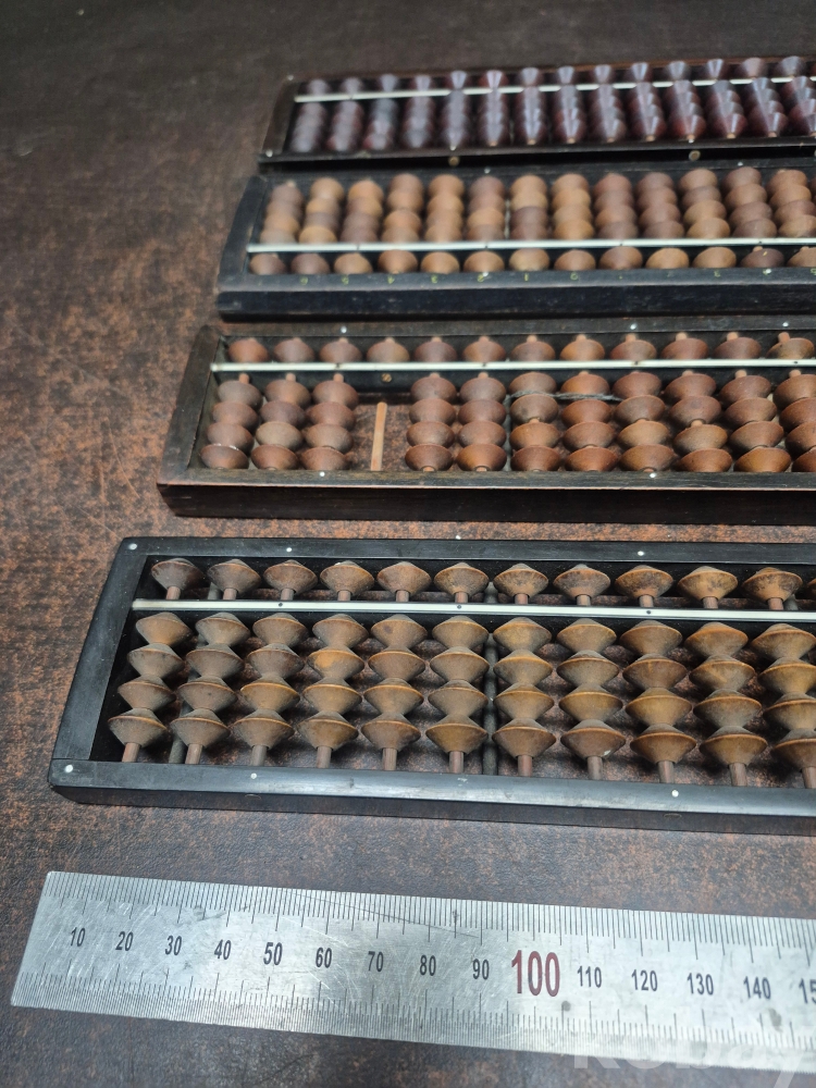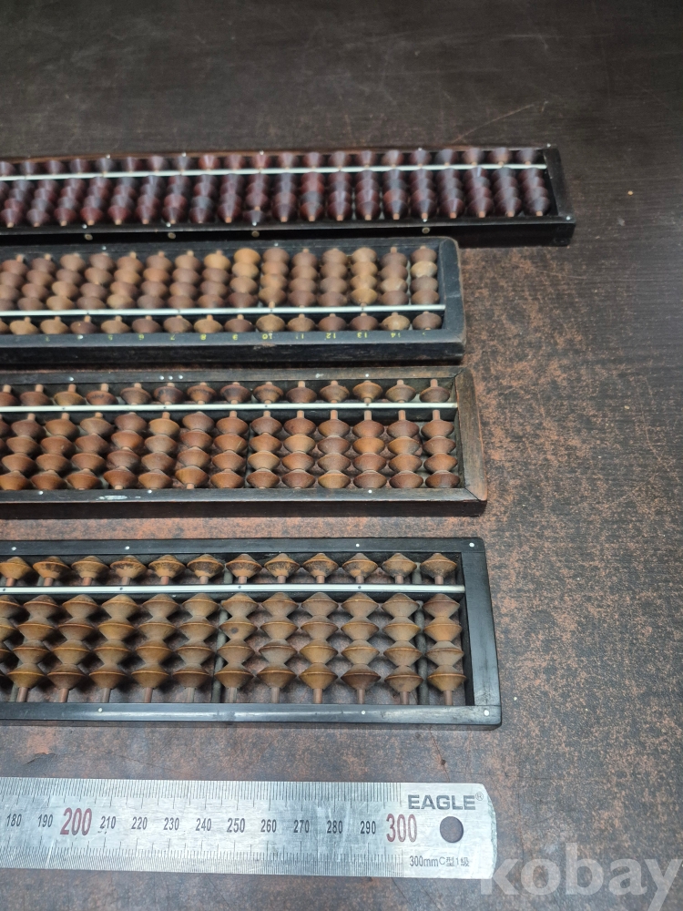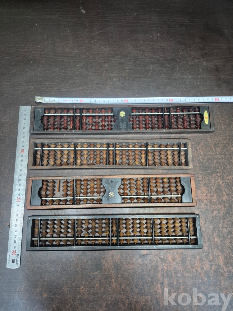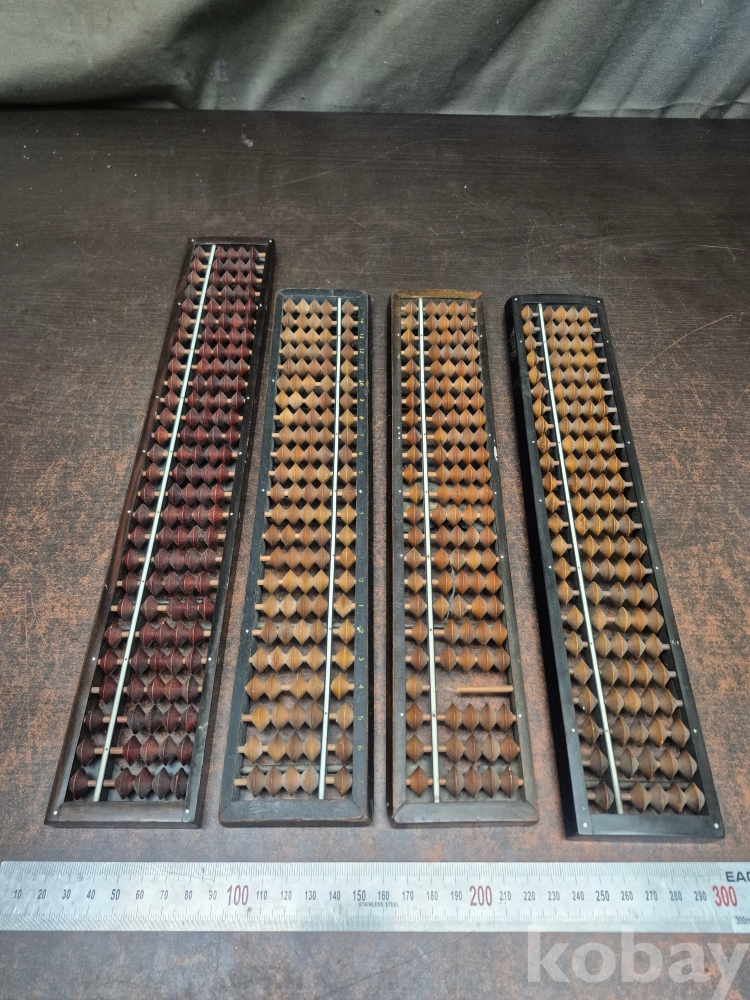 1980년대 원목을 사괴 물림으로 만들어진 나무 주판 4점 1점은 알이 한줄 빠져있어요 38*6*1.5