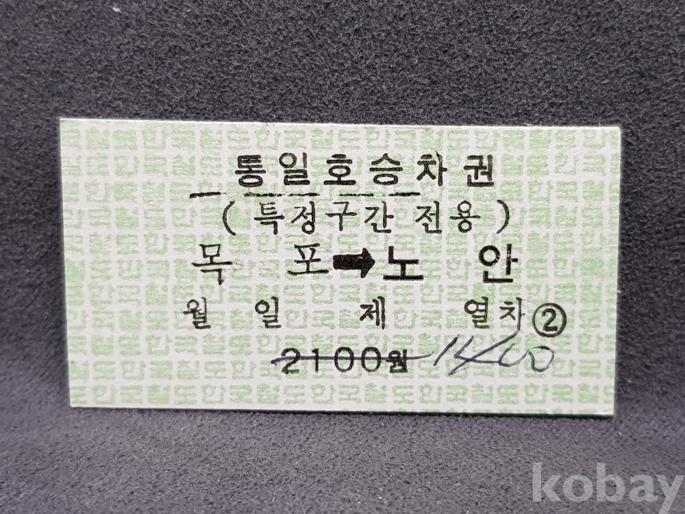 - 미사용 통일호 승차권(특정구간전용) " 목포 ▶ 노안 " 1400원