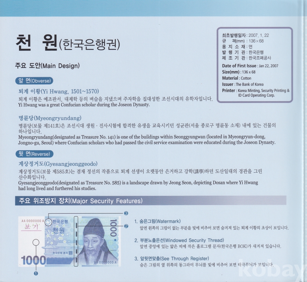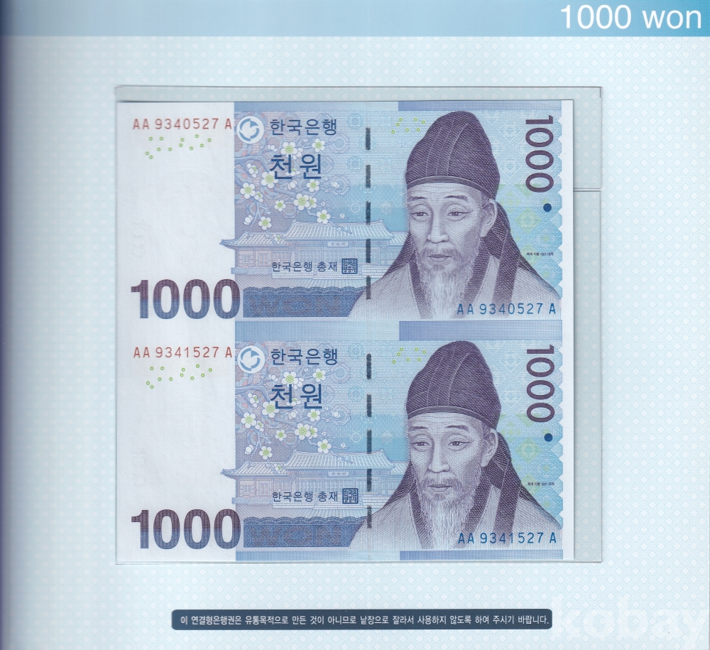 - 2014년 발행된 3차 천원 2연결형 지폐입니다.
