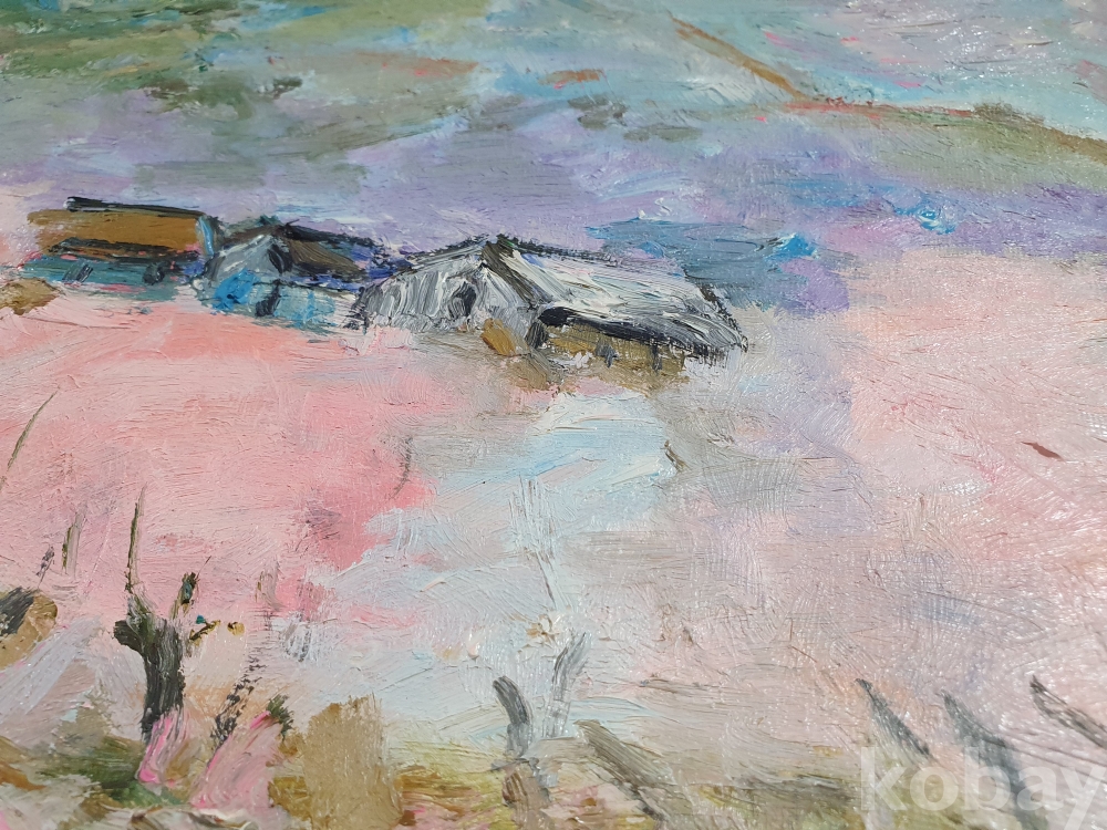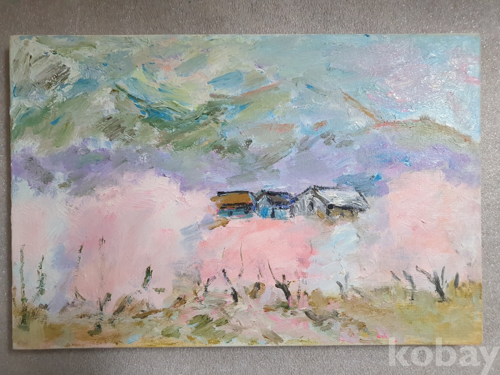 {천원경매} 2-0649 유화 벚꽃과 집 액자 (묶음배송 불가, 41*27)