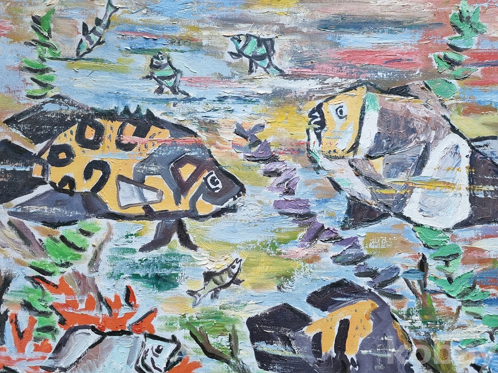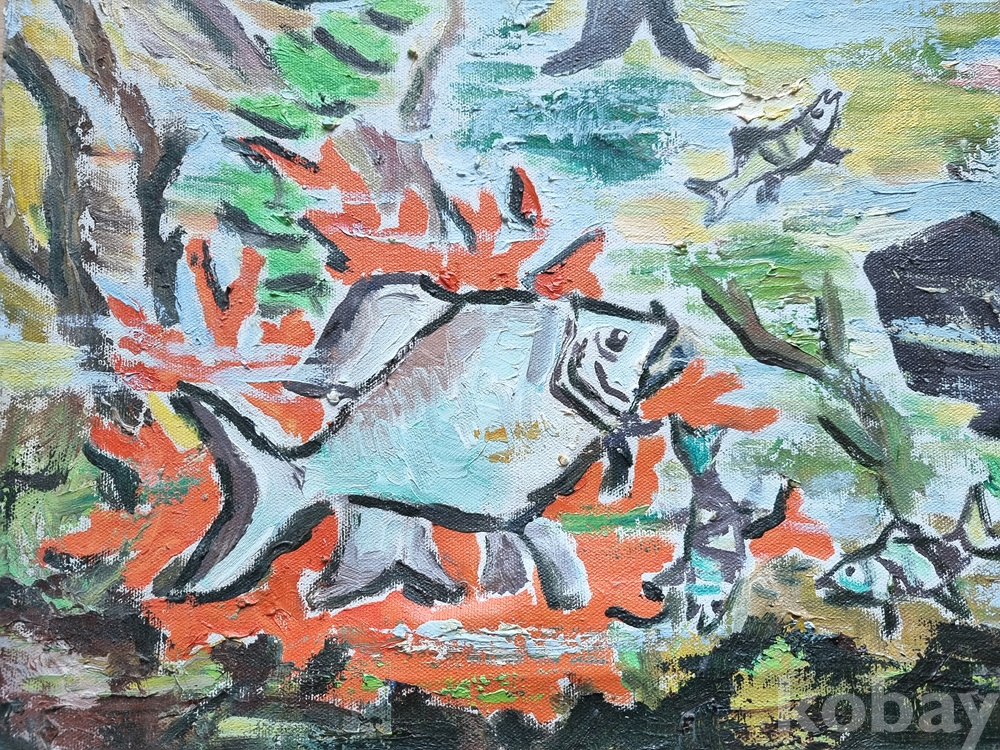 열대어의 역동적인 움직임과 비늘의 느낌을 입체적이고 역동적으로 표현했습니다.
