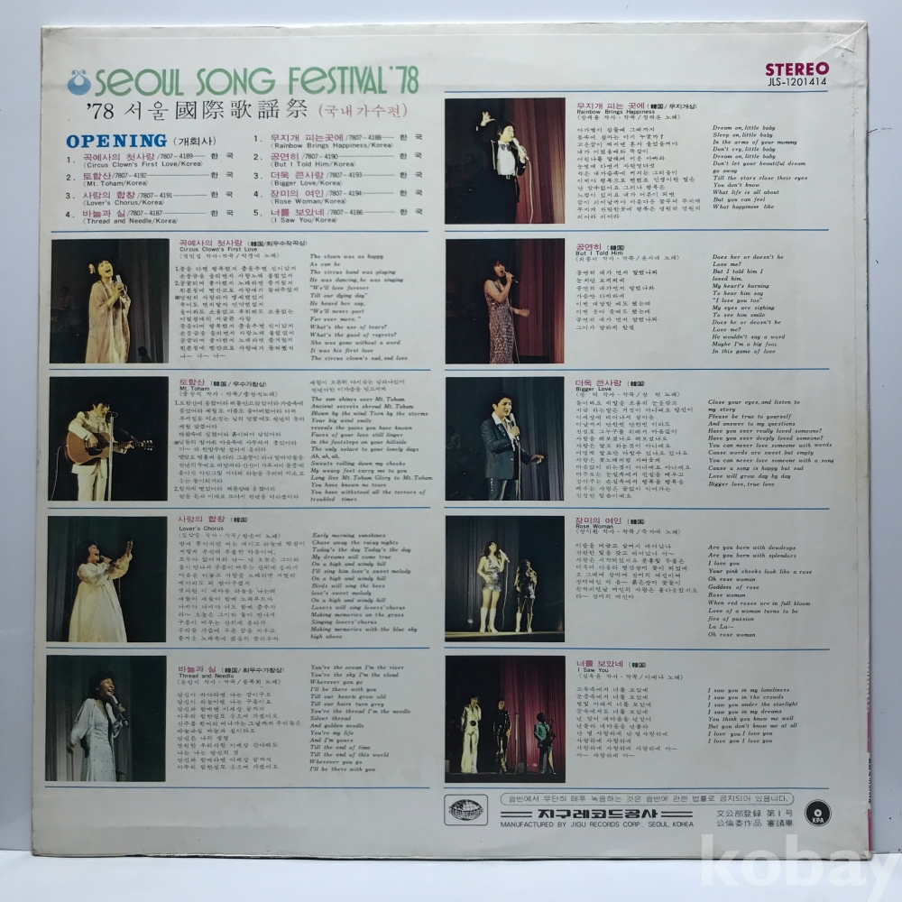 LP 86,050-7 78 서울국제가요제 - 국내가수편 _ 자켓 EX+ 알판 EX+ 78 년 국내반