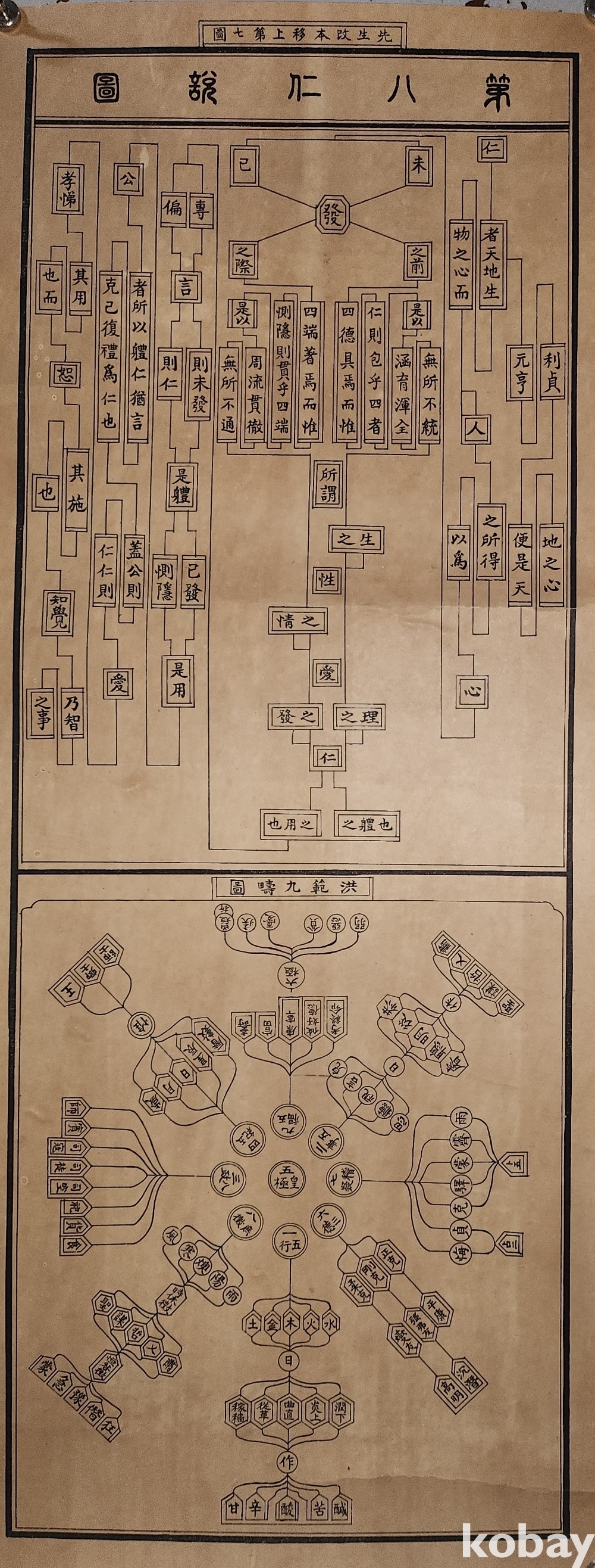 성학십도(聖學十圖) 중 제8도이며 심학도(心學圖) 목판본으로 원본입니다,