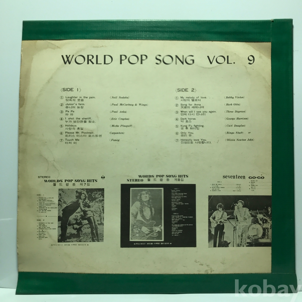 LP 83,840-73 Various Artists - WORLD POP SONG VOL. 9 . 자켓 VG 알판 EX 국내반