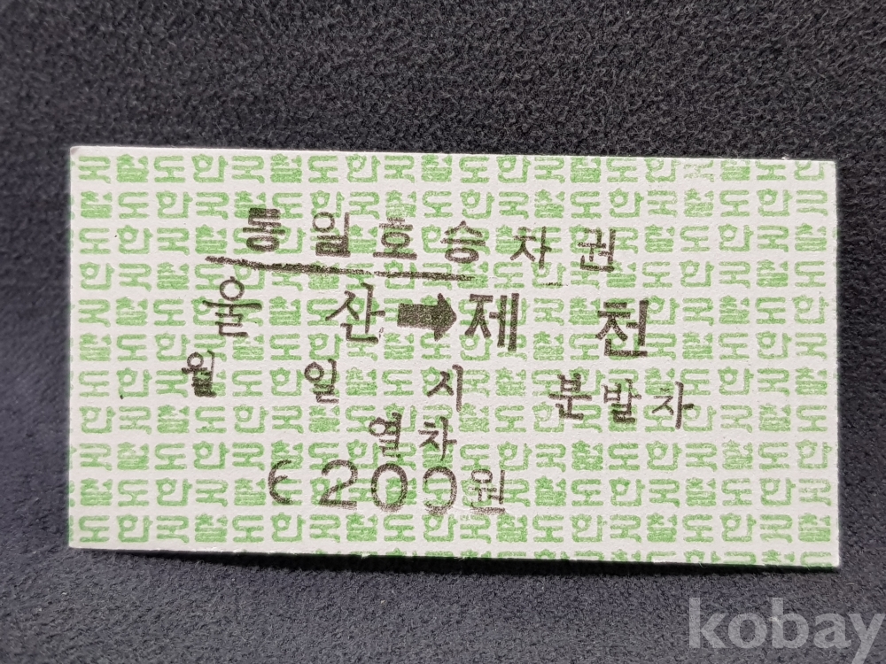 - 미사용 통일호 승차권 " 울산 ▶ 제천 " 6200원