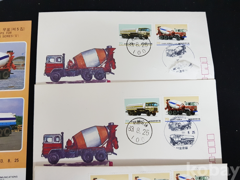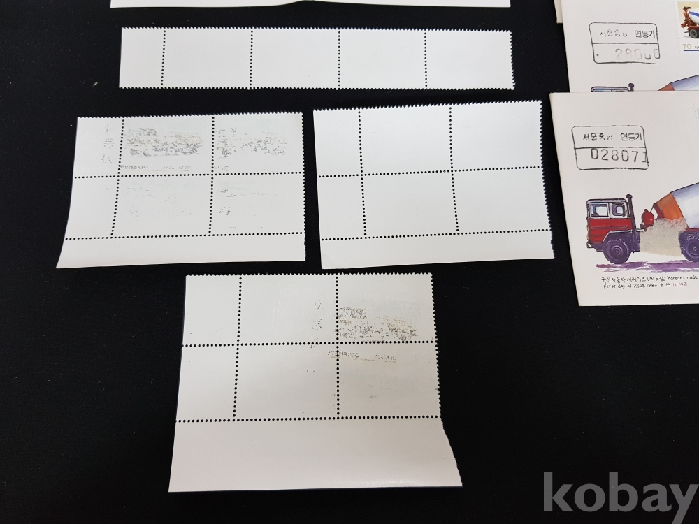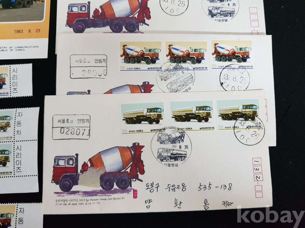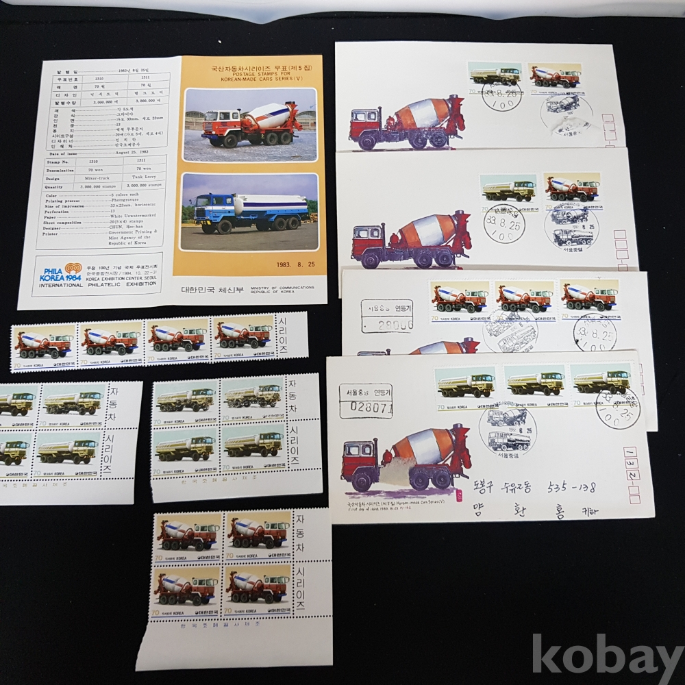 - 1983년 국산 자동차 시리즈 제 5집 안내카드, 초일봉피, 명판 등 모음