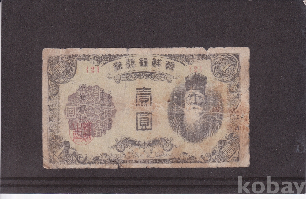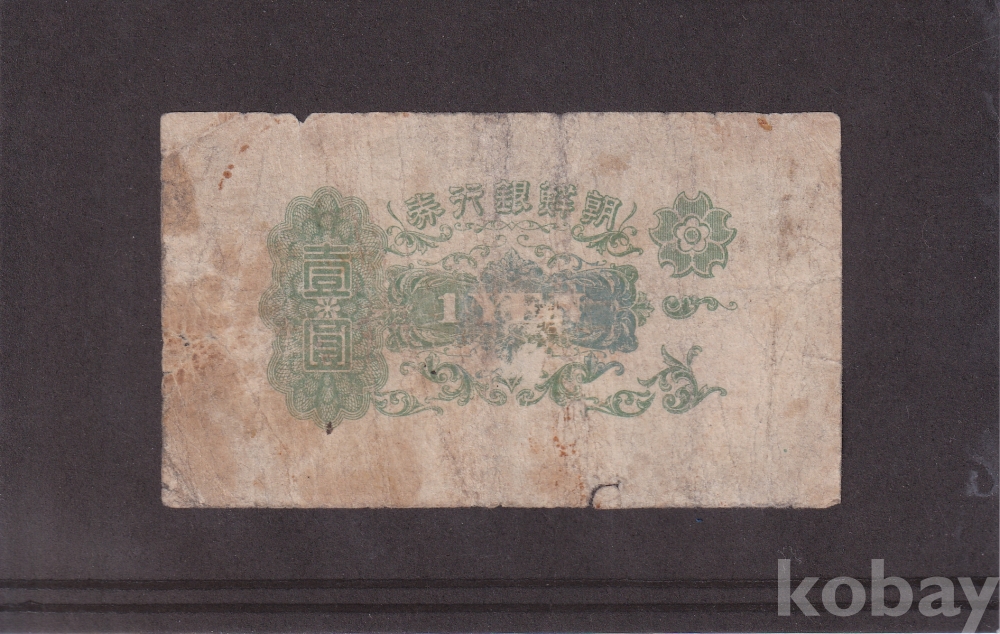 - 조선은행 1945년 을 일원 판번호 2번 사용제 지폐