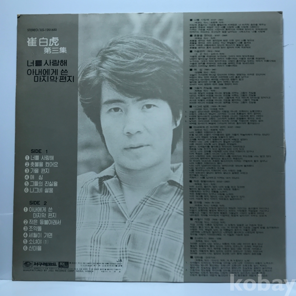 LP 7,000-18 최백호 - 제3집 아내에게 쓴 마지막 편지 너를 사랑해 . 자켓 EX 알판 EX 81 년 국내반