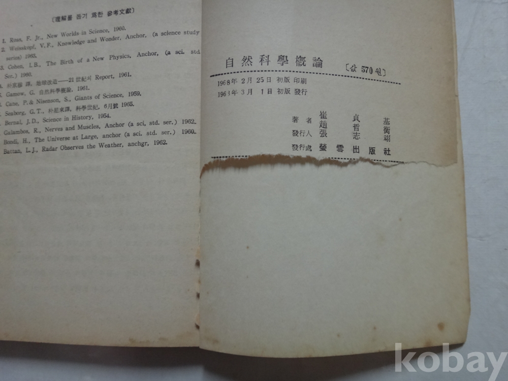 자연과학개론 (1968년, 최정기, 조철형 공저, 형설출판사)