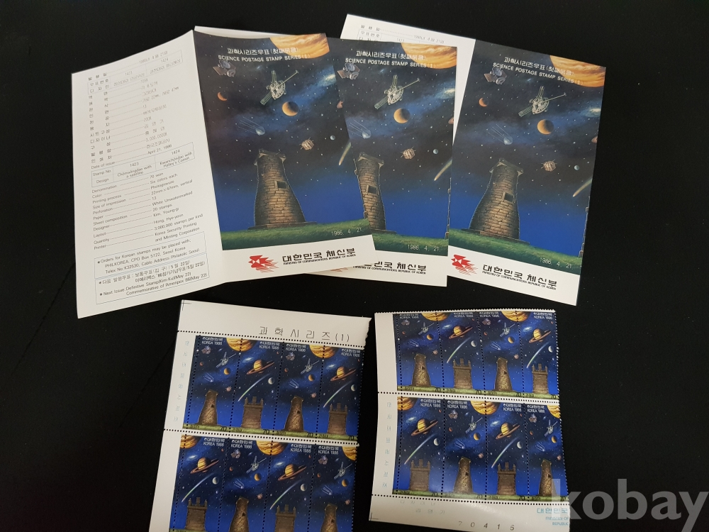 - 1986년 과학시리즈 제 1집 안내카드, 초일봉피, 명판 등 모음