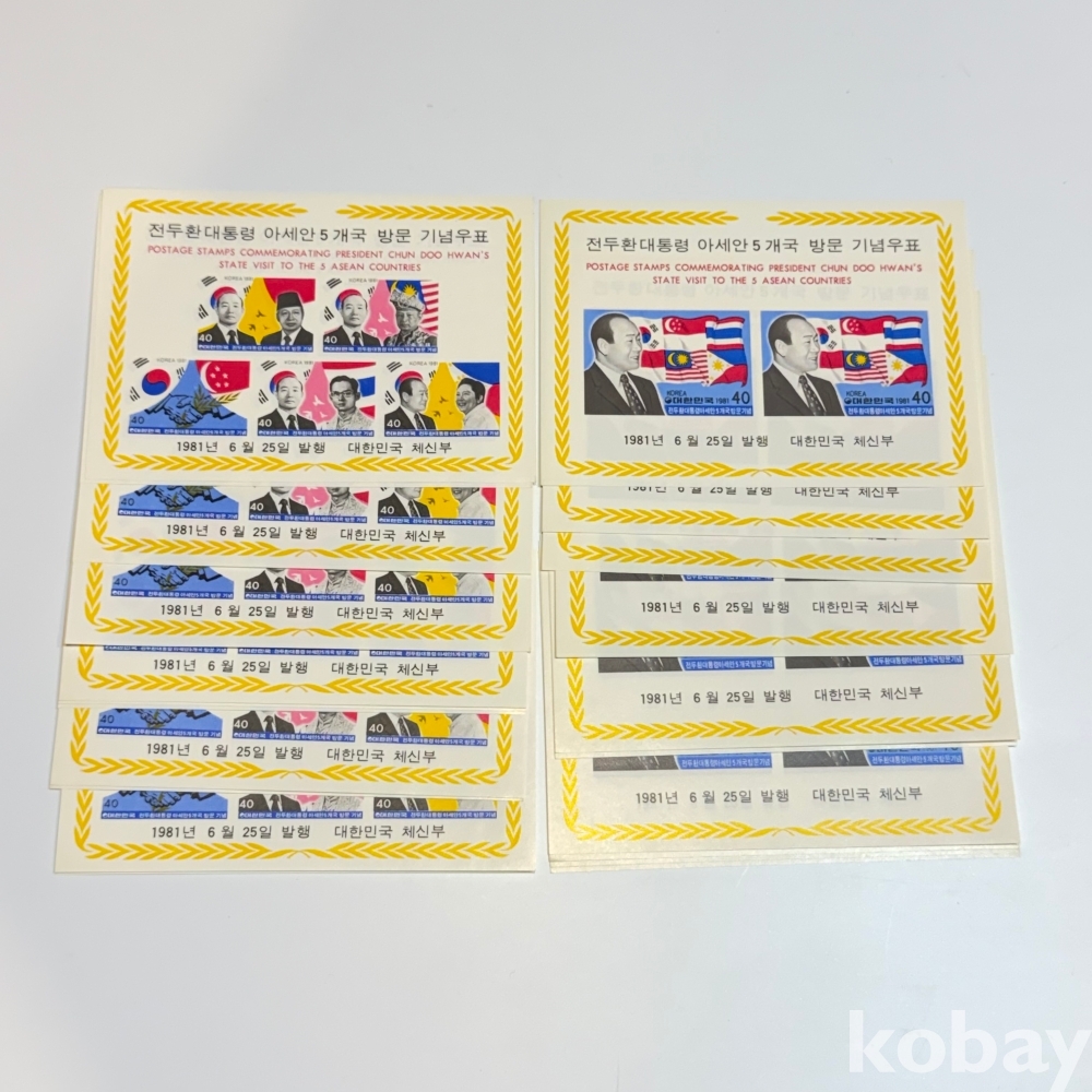 1981년 전두환대통령 아세안 5개국 방문 기념우표 시트 2종 (20매)
