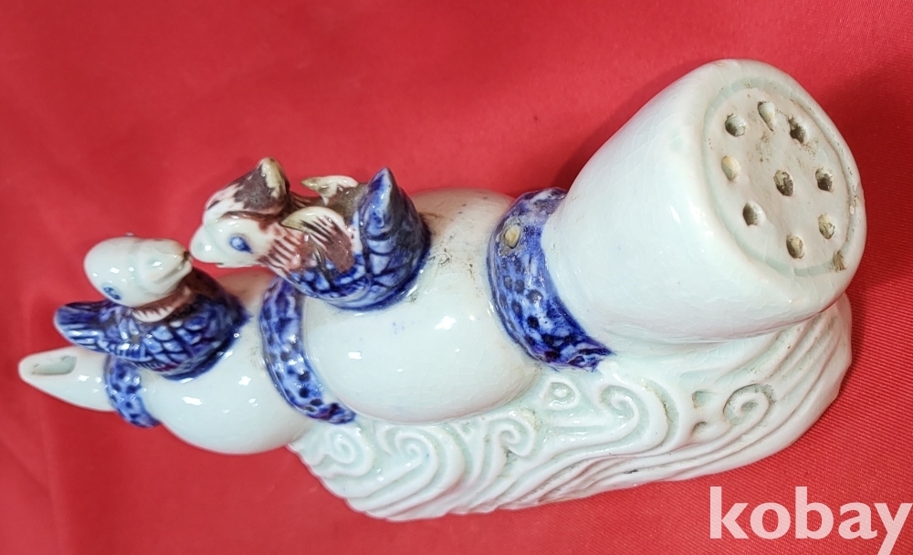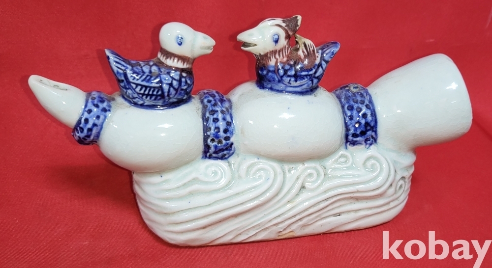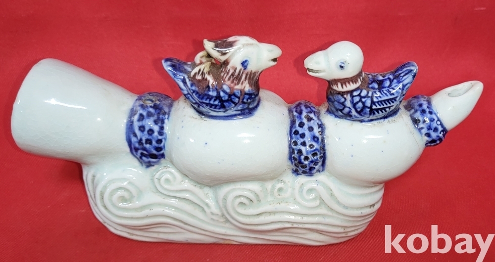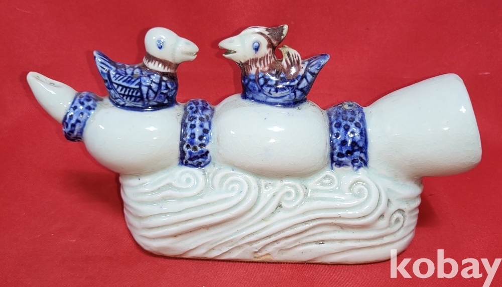 연대좋은 청화 유리홍 원앙문양 큰 연적입니다,