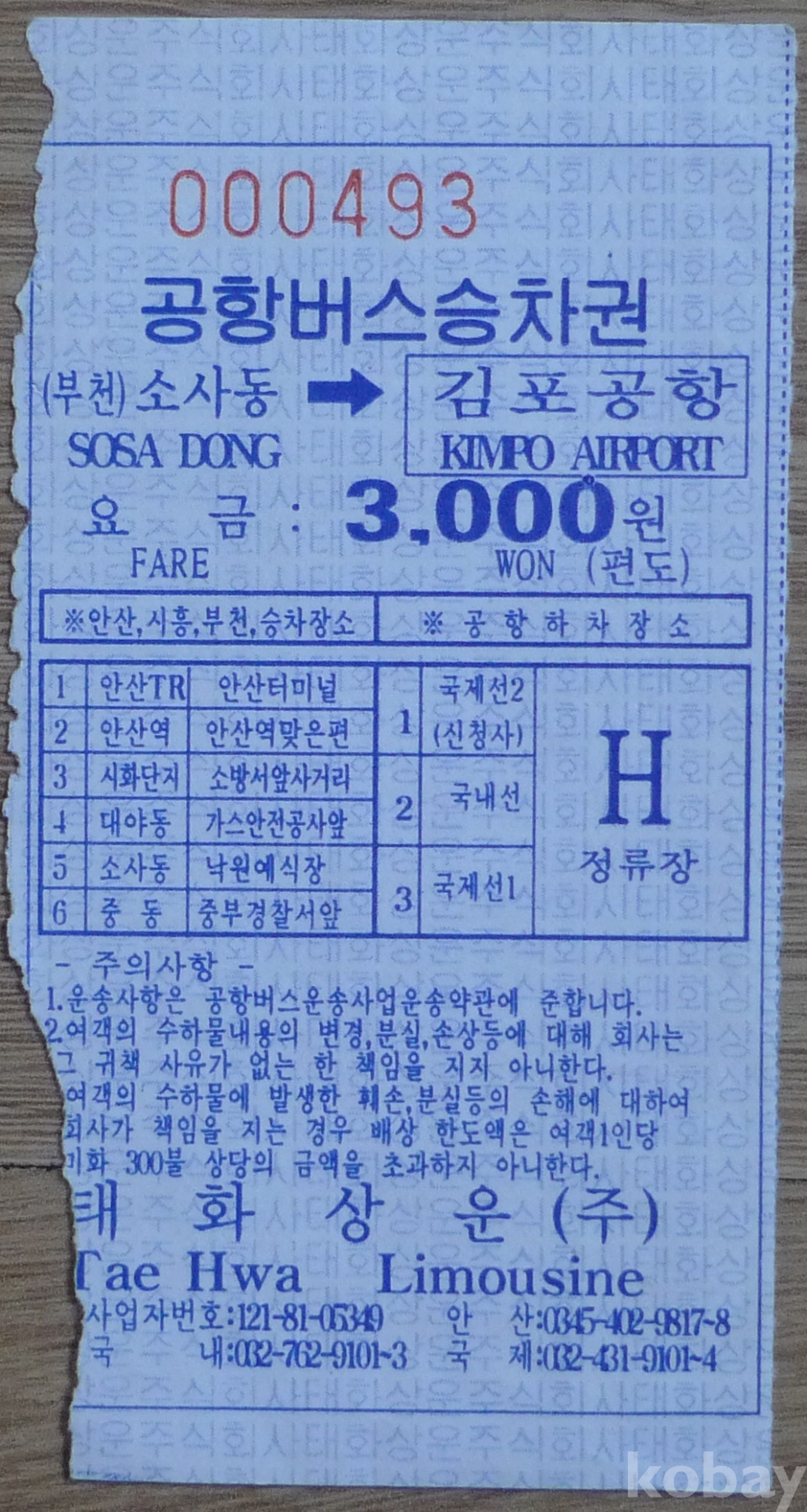 소사동 - 김포공항 3000원 태화상운 공항버스 승차권
