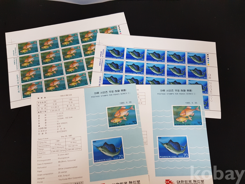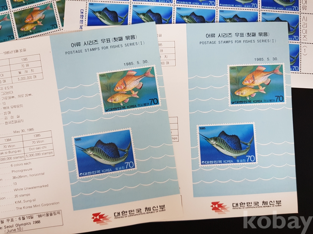 - 1985년 어류시리즈 제 1집 전지, 시트, 안내카드 등