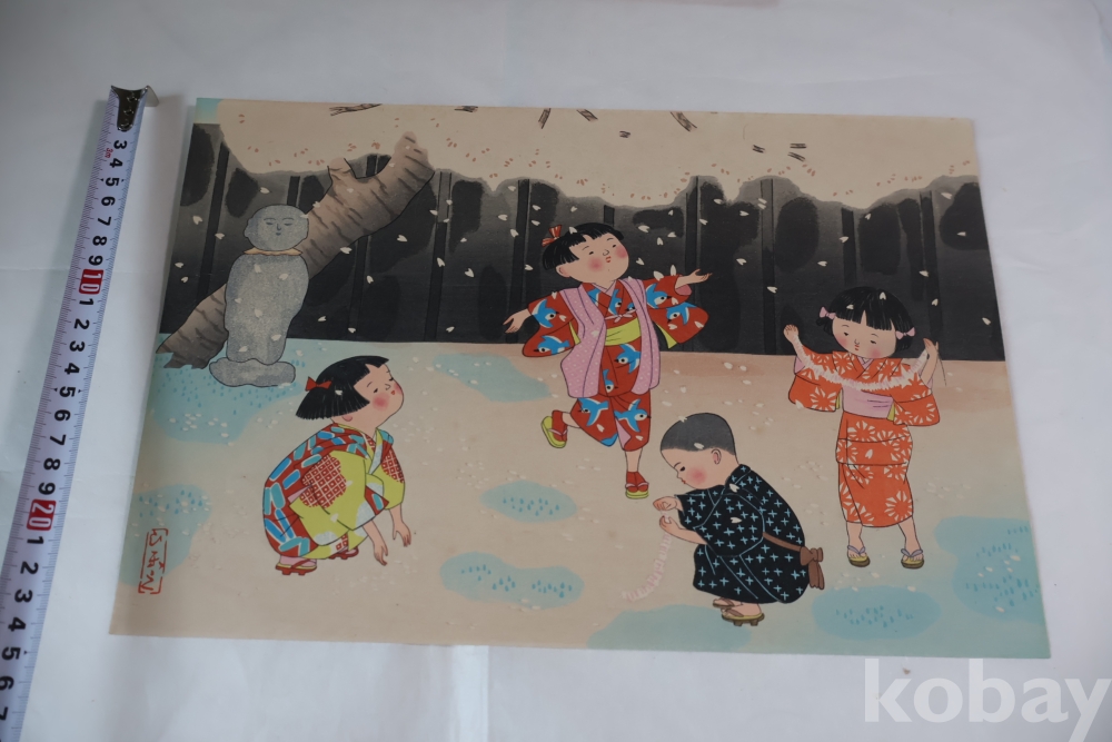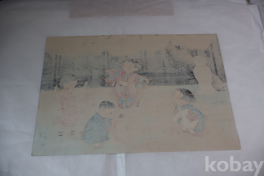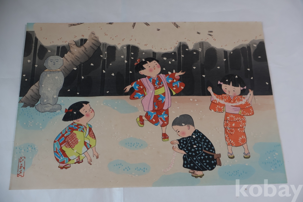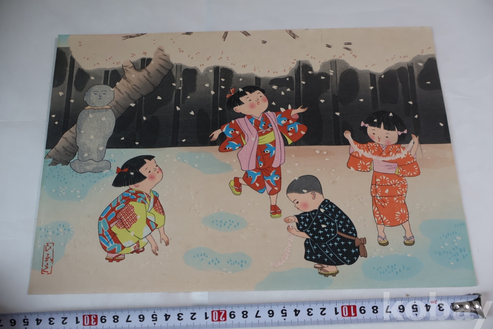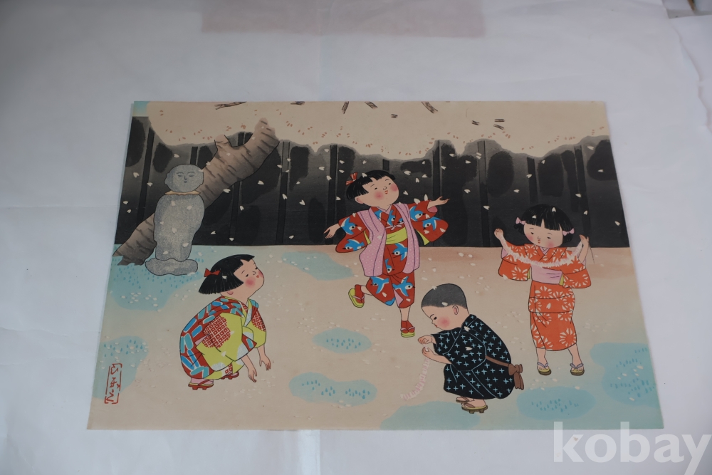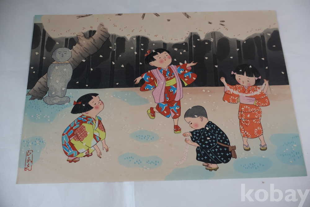Hitoshi Kiyohara (1896-1956) 목판화 임니다 아이들을 주제로한 명화 이며 아이들을 멋지게 표현한 명화 임니다 1940대 이후 작 화가의 낙관을 가진 귀한 목판화 임니다