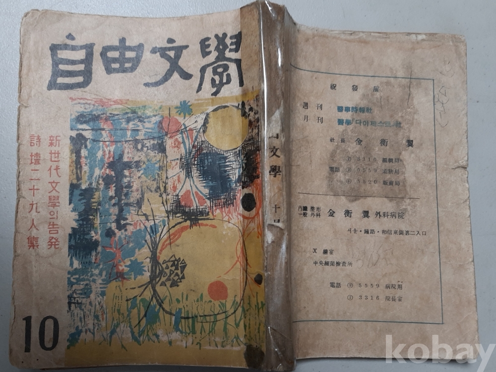 자유문학1-1959년10월호 표지 정영열