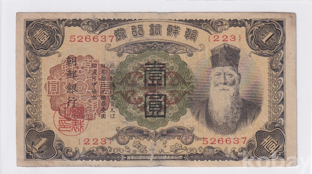 - 조선은행 지폐 모음展 5 - 1932년 개 일원 - 판번호 223번 유번호권 사용제 지폐