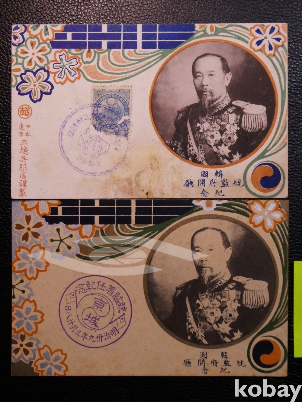 ▣근대한국엽서(진본): 한국 통감부 개청기념(이토 히로부미 착임기념인 날인) 두가지 버전 2매 세트 / 매우 귀함.