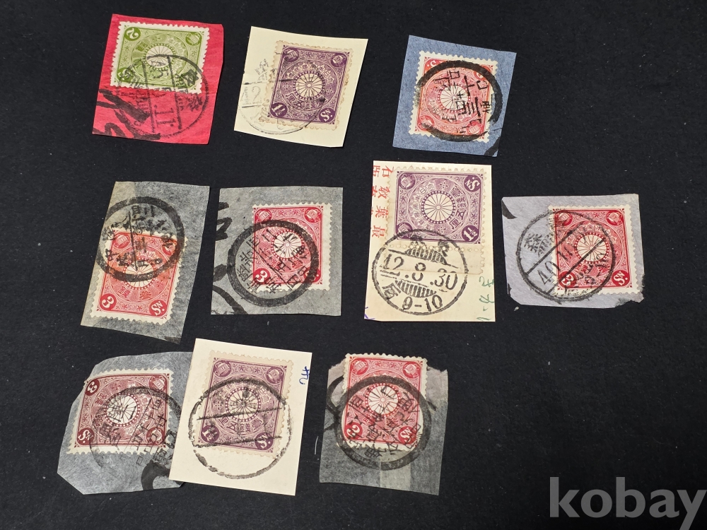 일본 1900년 이후 만월 국화 우표 10장. 1900년대 준클래식 우표