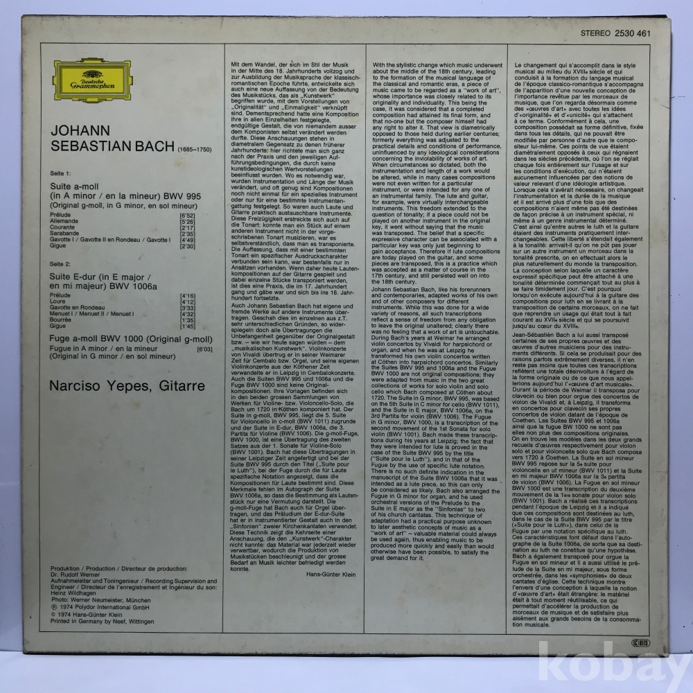 LP 83,805-21 Narciso Yepes - Bach: Works for Lute I _ 자켓 EX+ 알판 EX+ 74 년 수입반