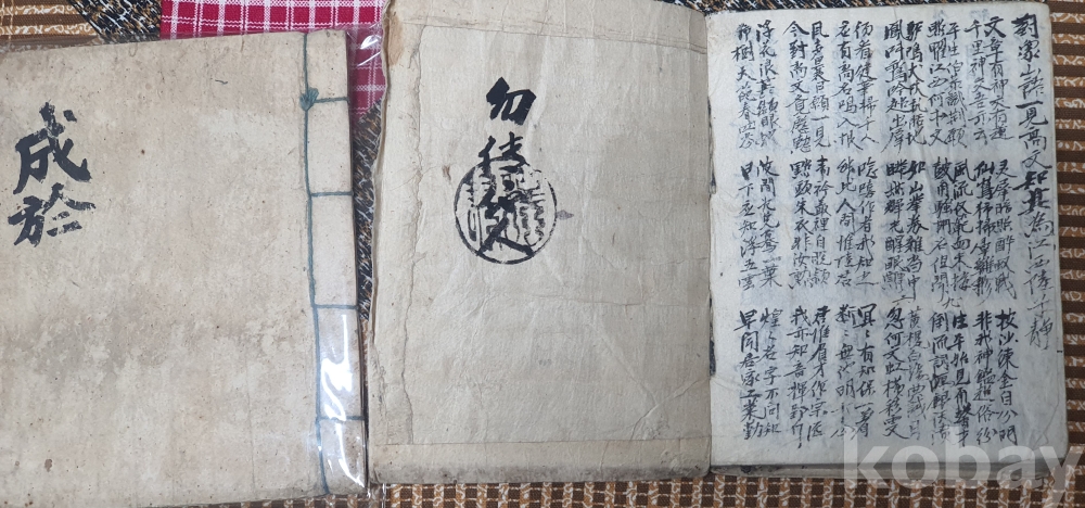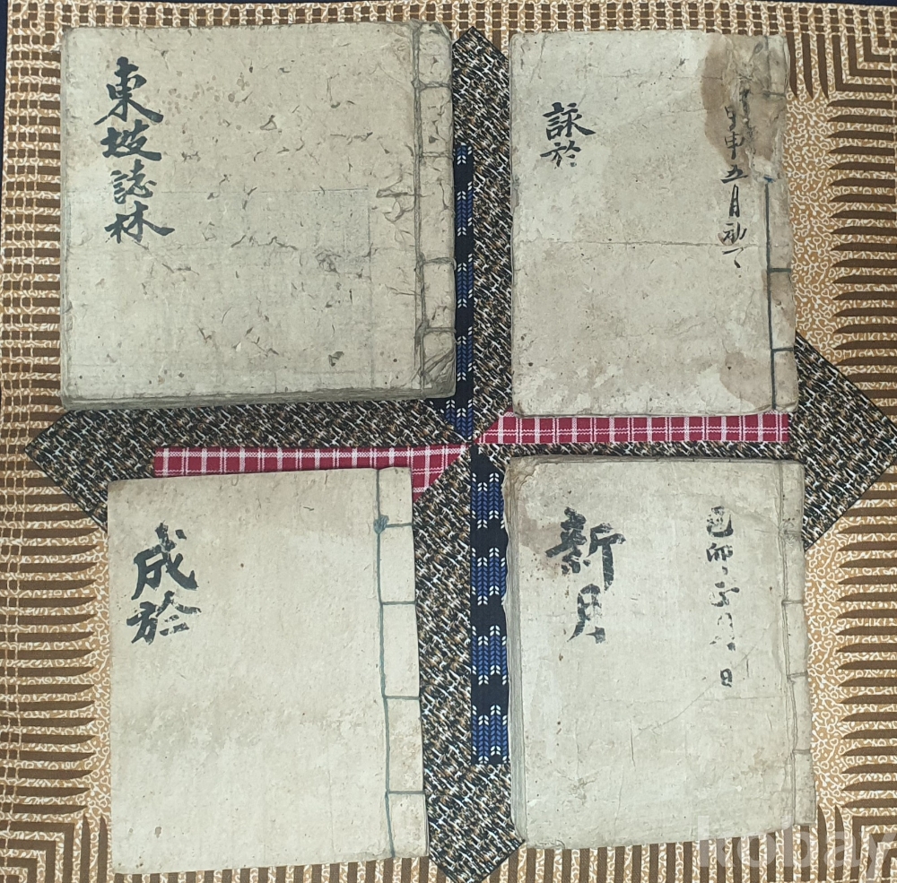 오래된 한자로 쓰여진 고서적 묶음입니다