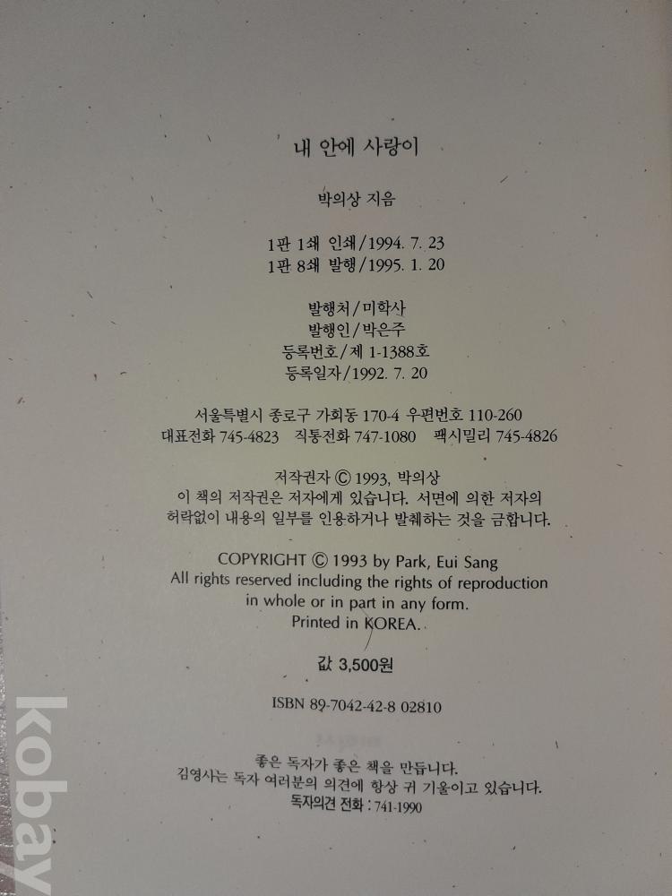 [ 내안에 사랑이 ] 박의상 시집