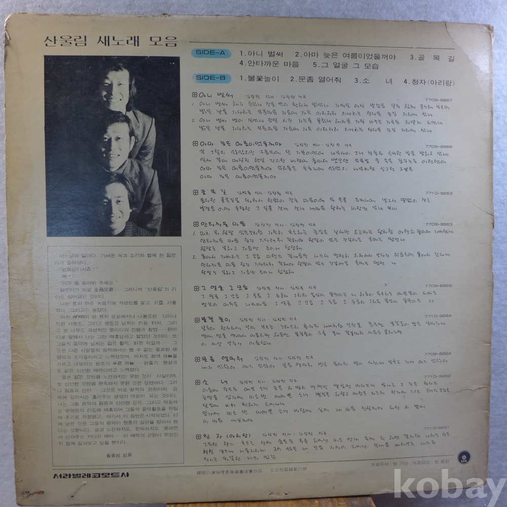 (귀한)LP음반: 산울림 1집 "아니 벌써","아마 늦은 여름이였을꺼야"등 수록앨범
